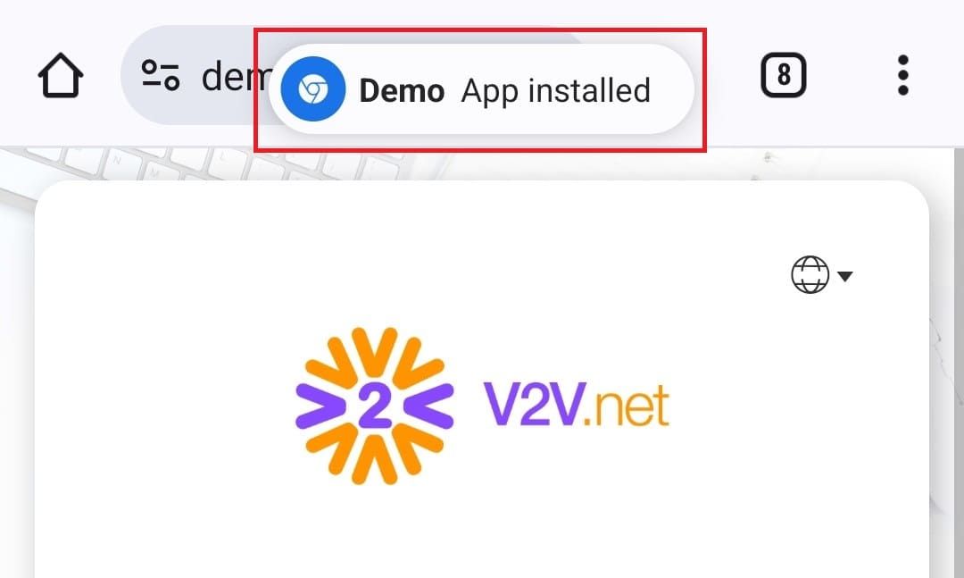 4. Após a confirmação, você verá a notificação de "App installed" ou "Instalado/Adicionado à tela inicial":